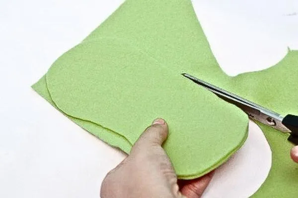 Grab the green felt and cut out two bean-shaped pieces. These will be the main part of your eye mask, so make sure they’re big enough to cover your eyes comfortably. Remember to think about how they will fit over the bridge of your nose!