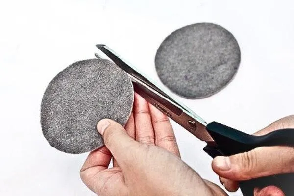 Now, let’s work on the goggles. Cut two circles out of the gray felt. These circles should be big enough to look like the body of the goggles on the mask.