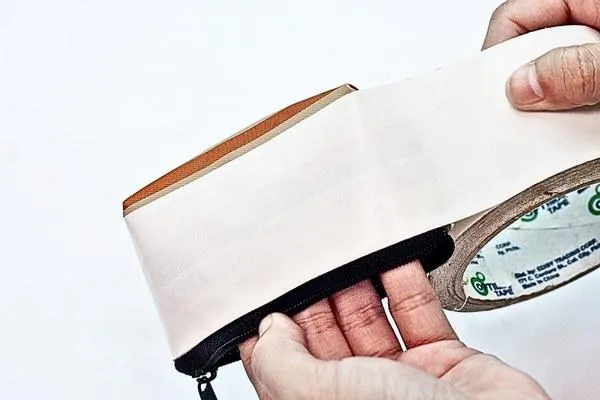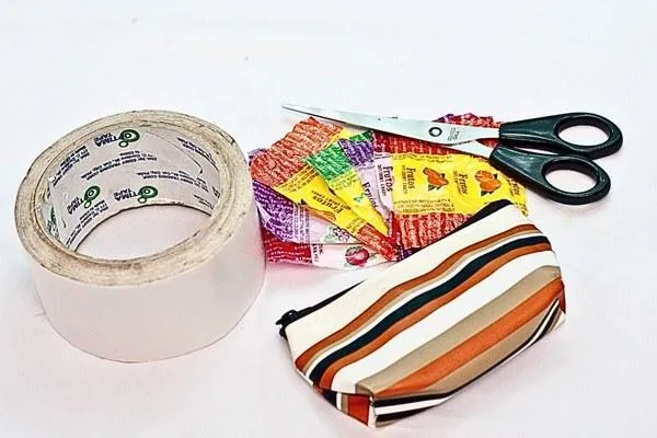 Be careful while doing this to ensure you don’t pull up the tape itself. This step prepares the wallet’s surface for sticking the candy wrappers.