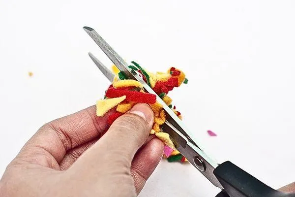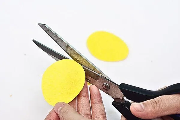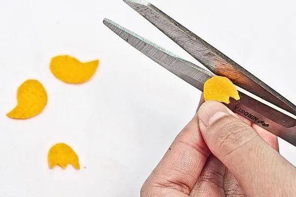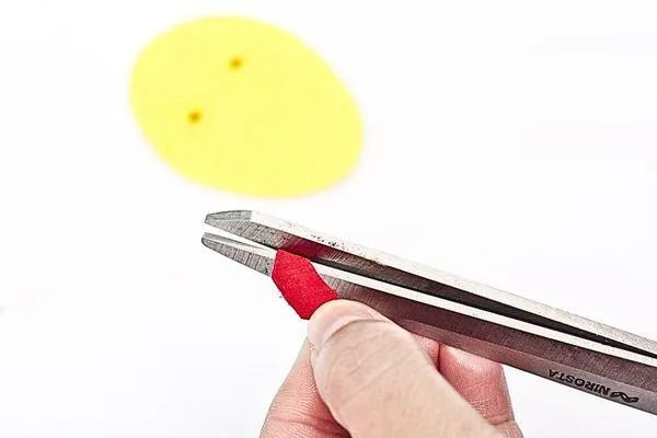 Cut a small flame shape from the yellow sponge paper. Then cut a slightly bigger flame shape from the red sponge paper to create a layered effect. Glue the yellow flame on top of the red to finish the double-layered design.