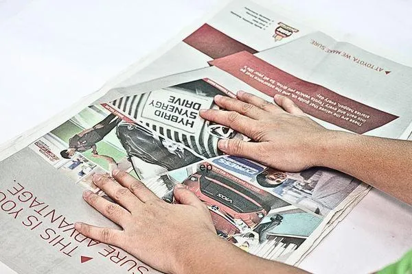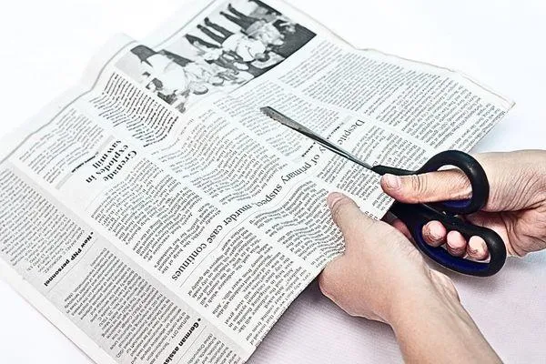 Cut two strips from newspaper—one should be 12 cm wide, and the other 9 cm wide. These strips will be used for creating decorative bows later. Try to keep the strips as neat as possible during cutting.