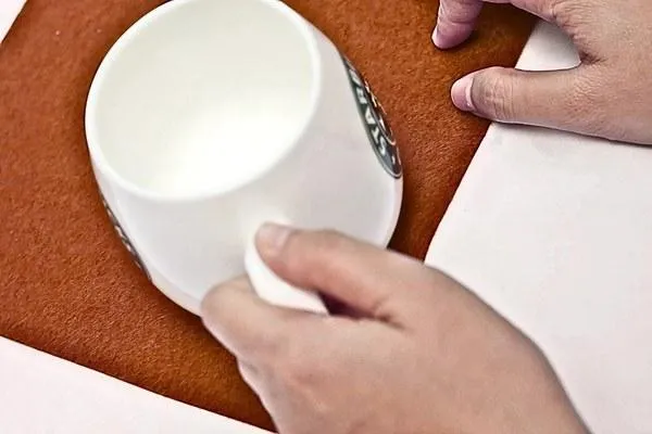 Ideally, the felt should be cut larger than the base of your drinkware to provide enough coverage for drips or condensation. Use a pencil or chalk to trace the size you prefer onto the felt.