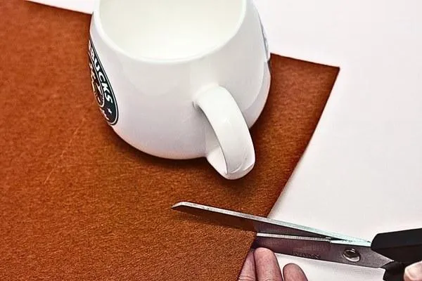 Take a mug or cup to use as a size reference and place it on one of your felt pieces.