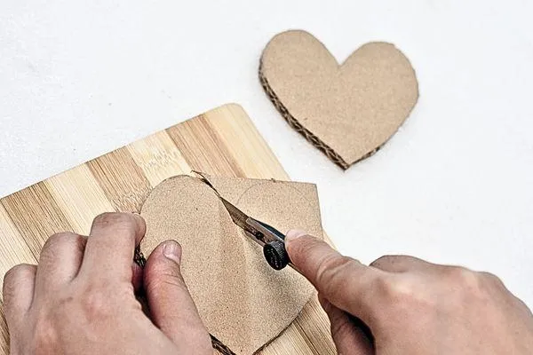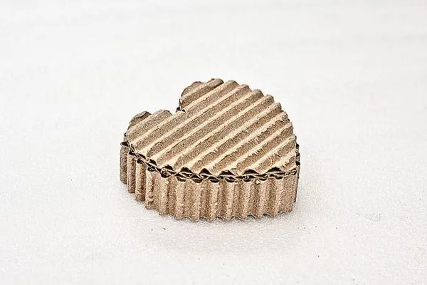 Now, try placing the corrugated cover onto the smaller heart to see how they fit together. You might need to trim the edges slightly for a perfect fit.