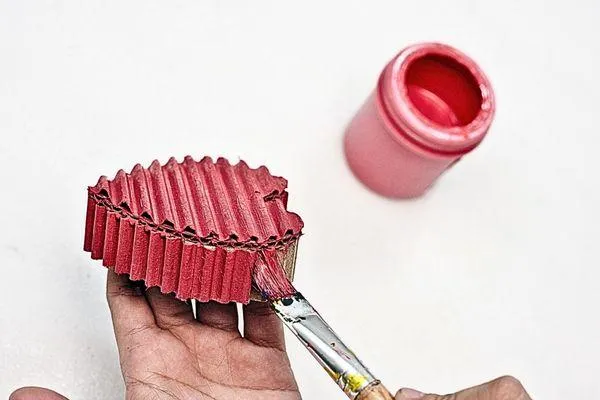 Use red acrylic paint to color the corrugated cover, giving it a vibrant and festive look. Paint carefully, and let it dry completely for an hour or two.