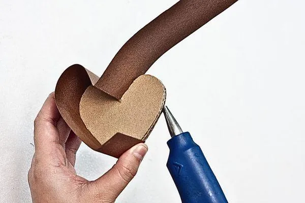 Cut a strip of brown construction board about 3 to 4 centimeters wide and a foot long. This will form the sides of the smaller heart. Glue it along the edge, ensuring it fits snugly.