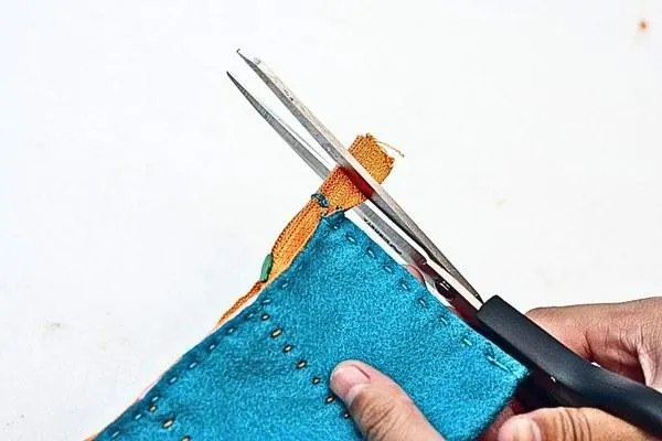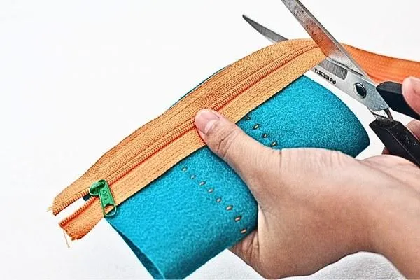 Make sure there's about a 1.5-centimeter allowance at each end of the zipper. Then, cut off any extra zipper we don't need.