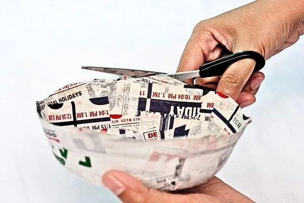 Cut two strips from newspaper—one should be 12 cm wide, and the other 9 cm wide. These strips will be used for creating decorative bows later. Try to keep the strips as neat as possible during cutting.
