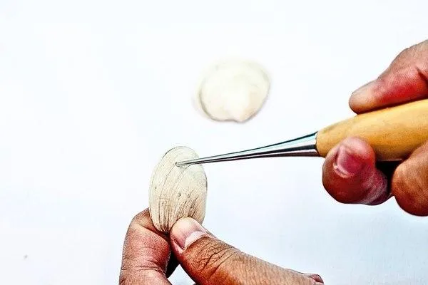 Using an awl pinpoint hole tool, carefully poke a small hole at the top of each clamshell. The hole should be sturdy enough to hold the earring wire securely, so work slowly to avoid cracking the shell.