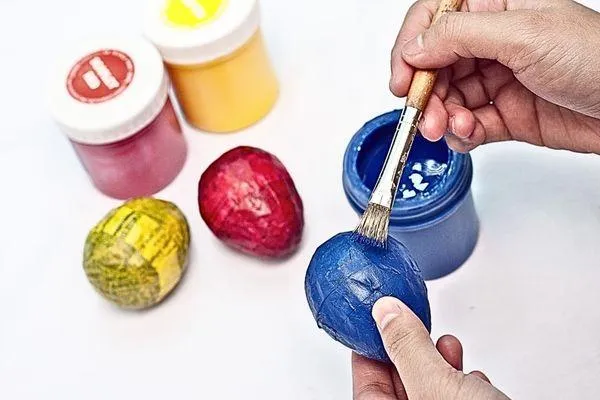 Paint both newspaper strips red using your paintbrush. Make sure to evenly coat each strip for a polished finish. Allow these painted strips to dry for several hours before proceeding further.