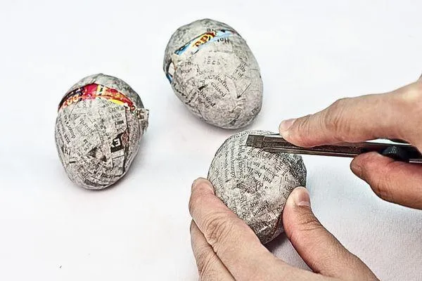 Cut two strips from newspaper—one should be 12 cm wide, and the other 9 cm wide. These strips will be used for creating decorative bows later. Try to keep the strips as neat as possible during cutting.