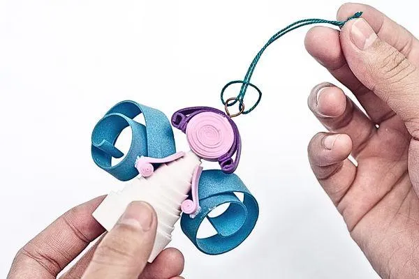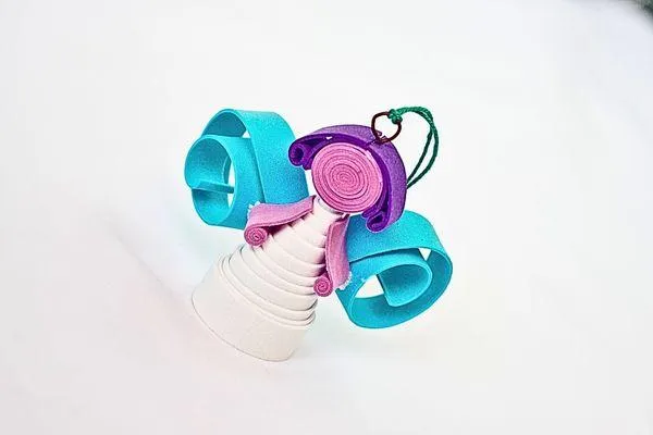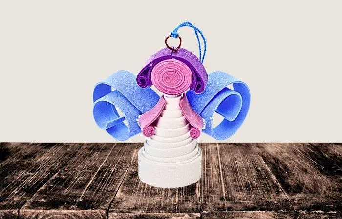 Add a little glue to the curled ends of the wings that touch the bottom sides of the body. This step ensures the wings remain stable and connected to the angel’s body without shifting out of place.