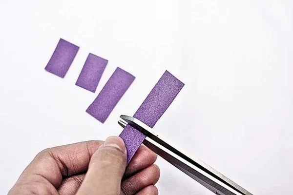 Cut several strips of purple sponge paper, each measuring around 2 to 3 centimeters long. These strips will become the angel’s hair. Focus on creating straight, even cuts to ensure the strips can be easily attached later.