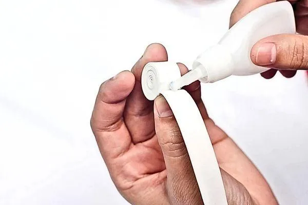 Using concrete glue, seal the end of the white roll to prevent it from unraveling. Apply a generous amount of glue and let it dry completely before moving on to the next step. A strong seal ensures your body shape will hold up well.
