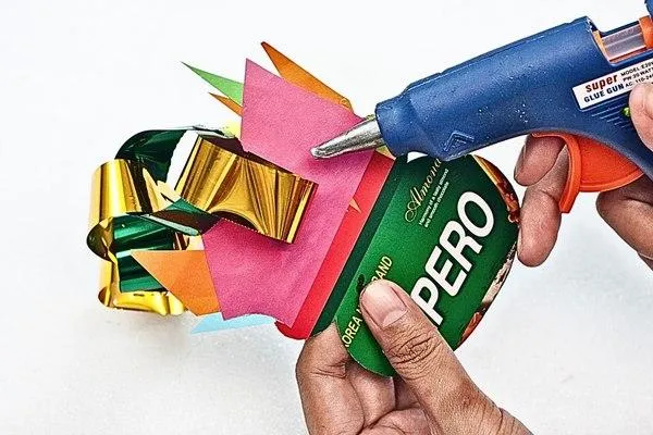 Cut another strip of newspaper and roll it tightly into a cylindrical shape to form the candle body. Adjust the roll until it reaches a height of roughly 2 inches. To secure the roll, glue the edges with hot glue to prevent unraveling.