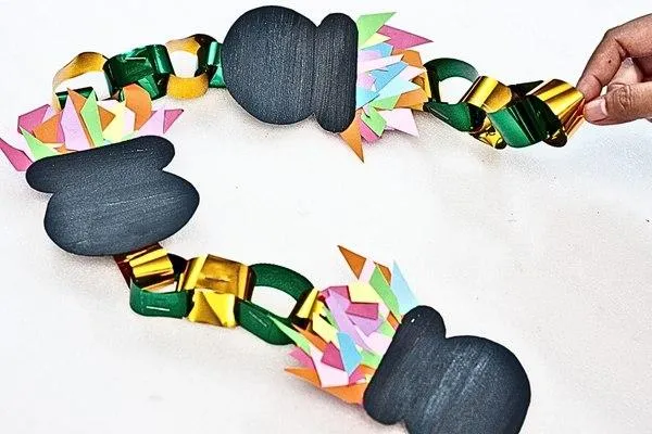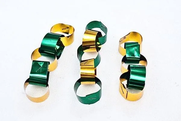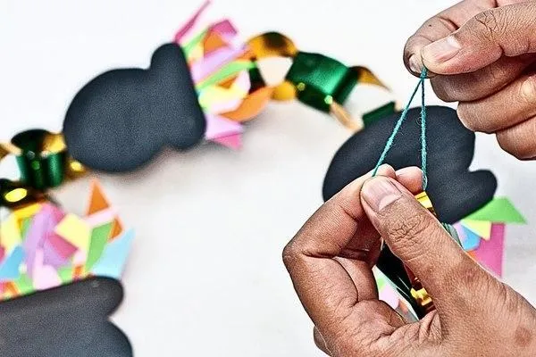 Take your braided newspaper and curve it gently into a circular shape. Secure the ends together with green duct tape until the circle forms the base of your wreath. Make sure it’s tightly taped so the wreath stays intact while decorating.